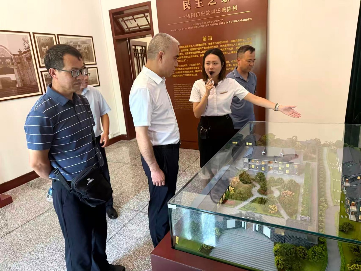 在安徽黄山,调研组一行前往休宁县齐云山民宿、祥源小镇非遗街区进行实地考察,在树屋民宿集群与非遗工坊街区,树屋群落如精灵栖居林间,落地窗将云海框作巨幅水墨,街区的非遗演出节目和剪纸、铁画等的非遗体验,恍若从古话卷翩然而至的徽州旧梦.调研组重点关注“非遗+民宿”融合模式,探究民宿、非遗手艺、非遗表演、非遗文创的沉浸式文旅体验。在黄山风景区管委会,调研组观看了气势恢宏的景区调度指挥中心电子显示屏,参观了解景区运行管理情况,同管委会有关负责人、运营人员和专家进行了座谈,对景区规划、生态环保、非遗文化展示等文旅融合重难点问题进行了探讨交流。在歙县,调研组参观调研了徽州历史博物馆、徽州古城传统民居,具体了解地域文化挖掘保护和古城传统民居保护、规划、利用的有关经验和做法。调研组还赴陶行知纪念馆瞻仰,开展廉政教育现场学习。