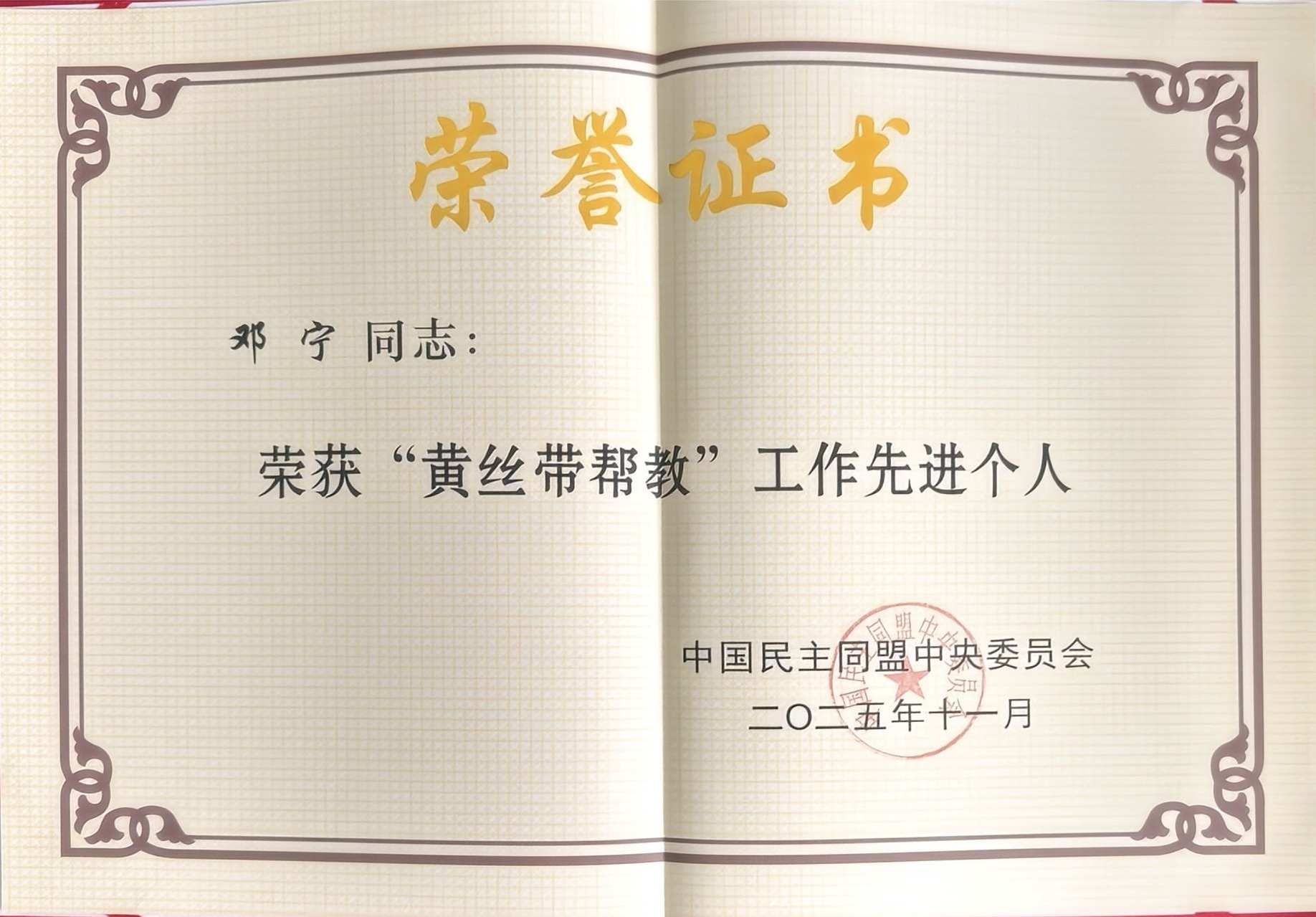 11月14日,民盟中央、司法部在重庆联合召开“黄丝带帮教”工作40周年座谈会。全国人大常委会副委员长、民盟中央主席丁仲礼出席会议。会议对“黄丝带帮教”工作先进集体和个人进行了表彰。民盟邵阳市委会青年工作委员会副主任、民盟邵阳市三中支部主委邓宁荣获民盟中央“‘黄丝带帮教’工作先进个人”称号。
