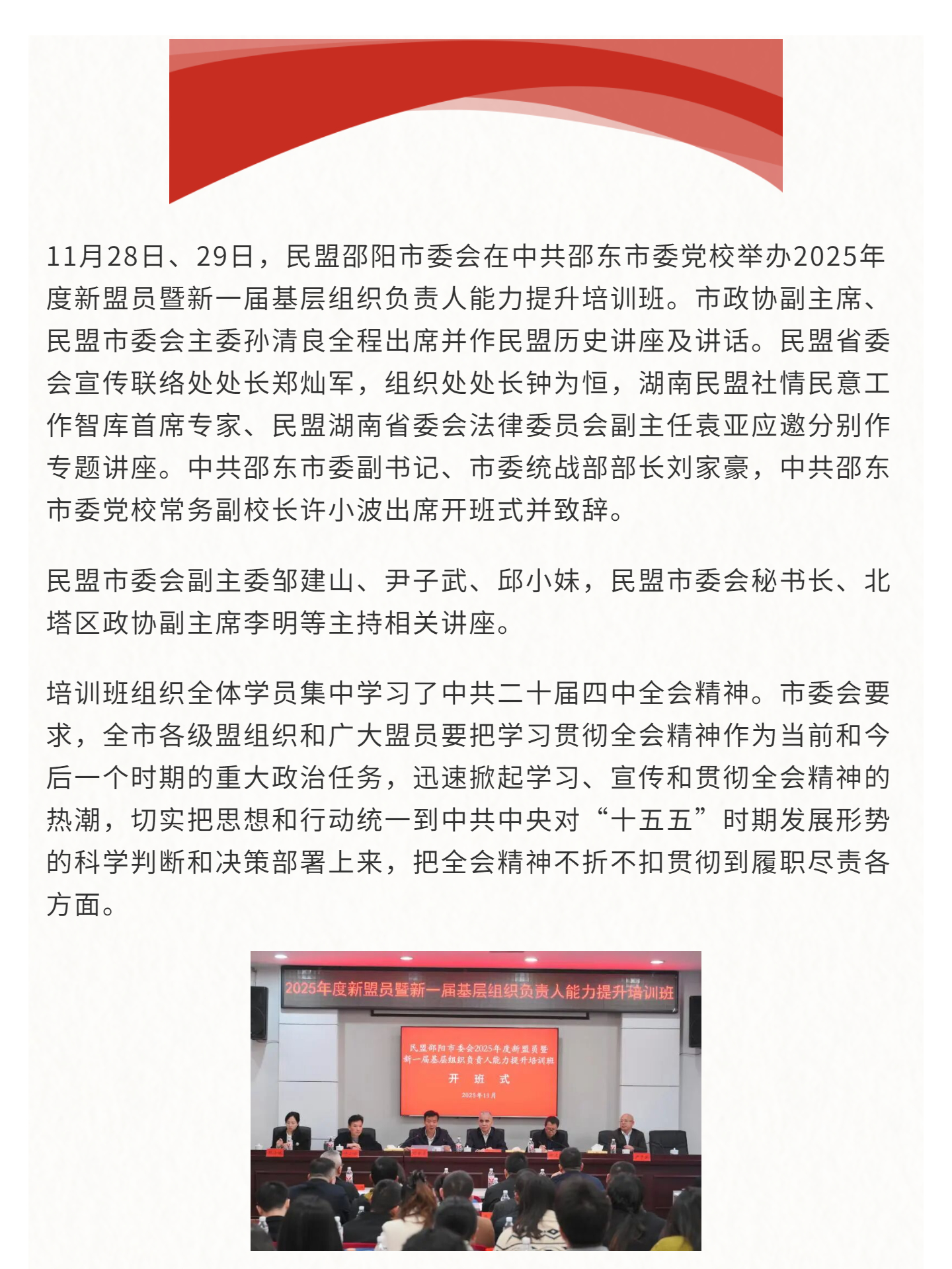 民盟邵阳市委会2025年度新盟员暨新一届基层组织负责人能力提升培训班顺利结业