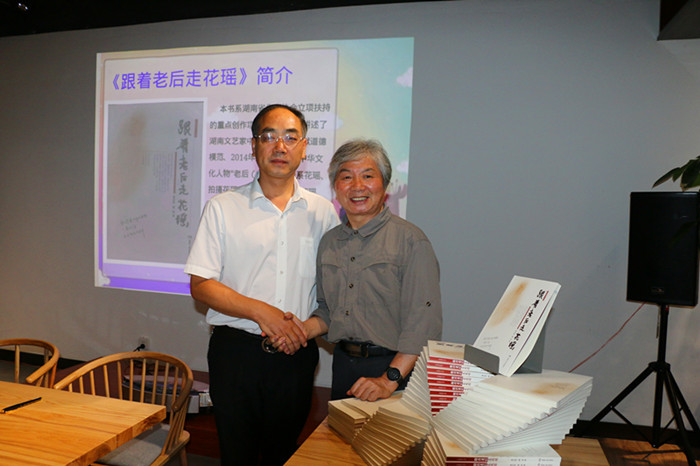 作者之一龙会吟,湖南隆回人,中国作家协会会员,中国戏剧家协会会员,隆回县作家协会主席,文学创作二级,现供职于湖南省隆回县文化馆。1983年在《芙蓉》发表中篇小说处女作《天边一钩弯弯月》。作品有小说、散文、报告文学、剧本等。多次获文学、戏剧创作奖,其作品曾被《小说选刊》《作家文摘》《小小说选刊》《微型小说选刊》等数家选刊转载,并多次入选国内权威选本。出版有小说集《谷雨茶》《深山里的白衣天使》等。发布会上,龙会吟深情地说道,我们在写作这本书的过程中,被老后的精神感动着、鼓舞着;在跟着老后走花瑶的那些日子里,我们的思想也得到了升华,找到了我们的文化自信。