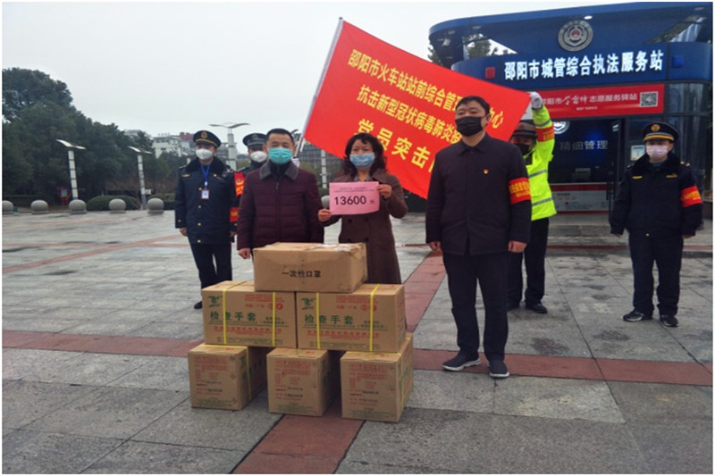 2月10日上午,在火车站广场举行简单的捐赠仪式,民盟邵阳市委专职副主委何忠将盟员捐的13600元现金,民盟盟员、金贝贝幼儿园园长、市人大常委会委员、省人大代表朱俞蓁将2000只口罩、5000个医用手套、2000瓶医用酒精捐赠给邵阳市火车站站前综合管理服务中心,市政府督导专员、督导室主任、邵阳市火车站站前综合管理服务中心主任梁武军等出席。