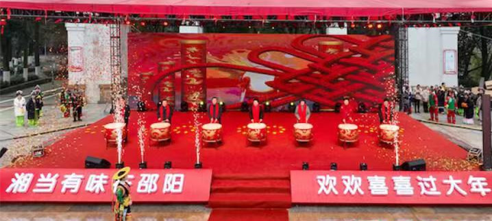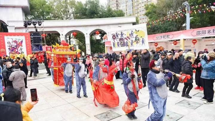 活动现场锣鼓喧天,热闹非凡。龙狮齐舞韵味传神,“老鼠娶亲”队伍现场演绎喜庆逗乐,引得现场观众拿出手机拍照录像,记录下一幕幕精彩瞬间。随后举行的花鼓戏专场演出中,邵阳花鼓戏精品联唱、花鼓小戏《刘海砍樵》等节目轮番上演,为观众呈现了一场精彩的视听盛宴。