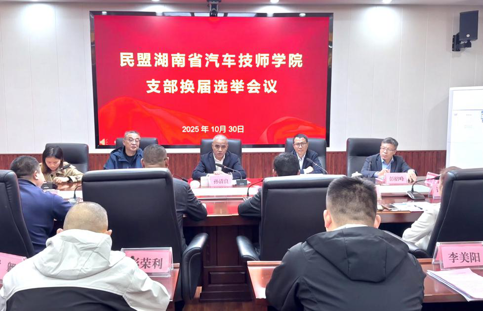 10月30日下午,中国民主同盟湖南省汽车技师学院支部换届会议在湖南省汽车技师学院顺利举行。邵阳市政协副主席、民盟市委会主委孙清良,湖南省汽车技师学院党委副书记刘炀烨出席会议并讲话。民盟市委会专职副主委、内部监督委员会主任邹建山主持会议。
