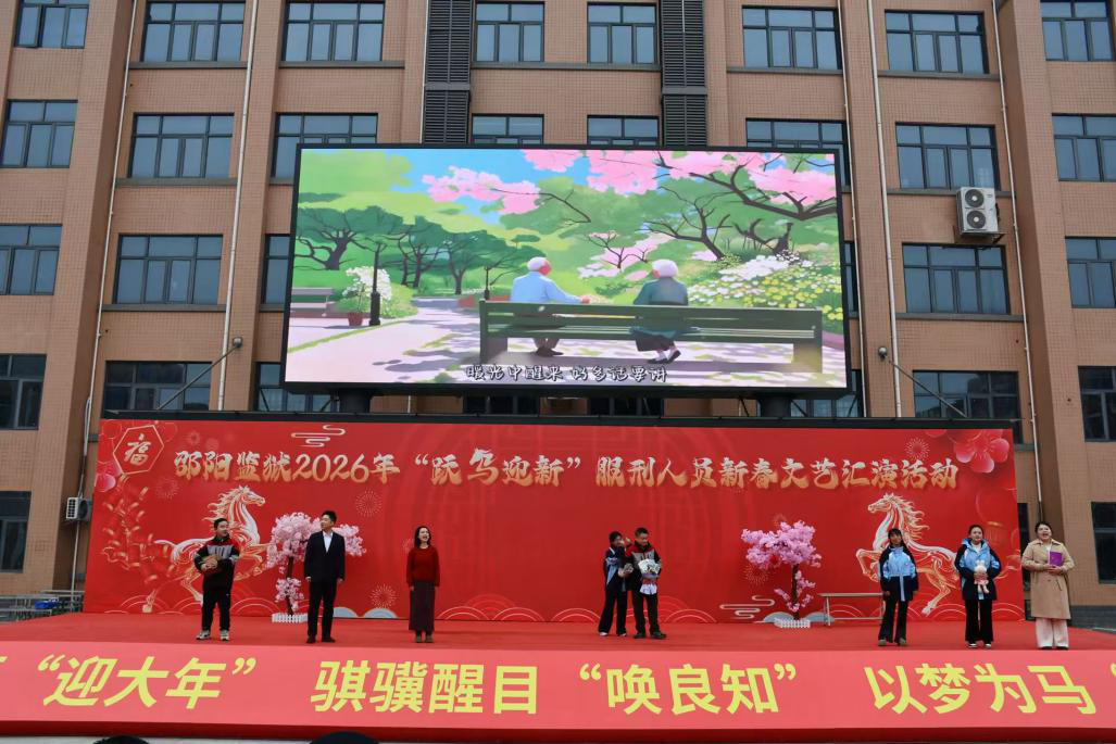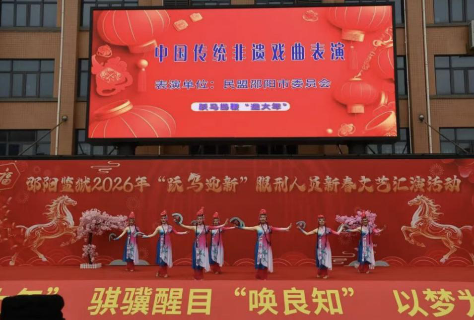 文艺传情,帮教暖心。 2月4日,邵阳监狱“跃马迎新”新春文艺汇演温情上演,民盟邵阳市委会选送了民盟市三中支部、市高级技工学校支部、市直文艺支部表演的节目,以多元艺术形式深化 “黄丝带帮教” 内涵,为服刑人员送上新春慰问与重生力量,用实际行动践行参政党服务社会的责任担当。
