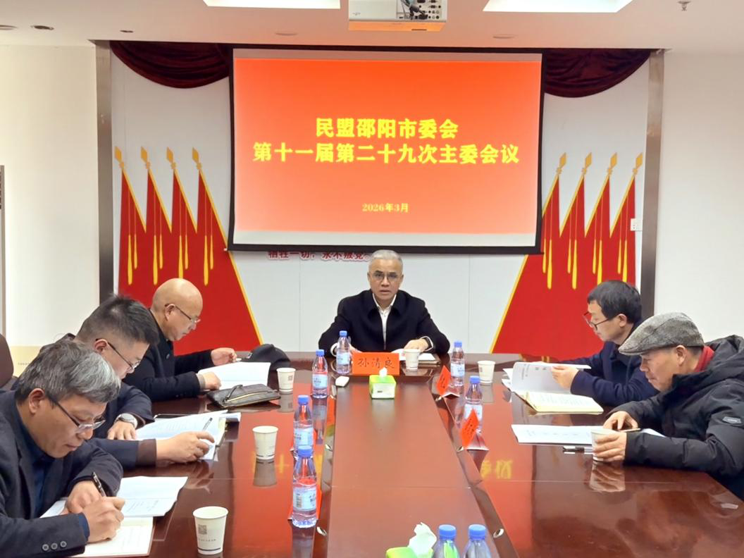 3月2日,民盟邵阳市委会十一届二十九次主委会议在市城市规划设计研究院召开。市政协副主席、民盟市委会主委孙清良主持,副主委邹建山、尹子武、唐文林出席会议。民盟市委会秘书长、北塔区政协副主席李明,市委会机关干部列席会议。