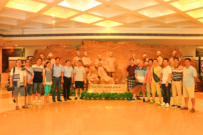 车一停下,我们迫不及待地登上高高的阶梯,走进“中国民主党派历史陈列馆”,大厅正中雕塑着大型塑像群“毛泽东1945年在重庆”,栩栩如生地展现了抗战胜利后,毛泽东接受蒋介石提出的“和平谈判”邀请,在重庆特园与周恩来、宋庆龄、冯玉祥、张治中、张澜、黄炎培、鲜英等共产党、国民党及民主党派人士一起相谈甚欢的情景。