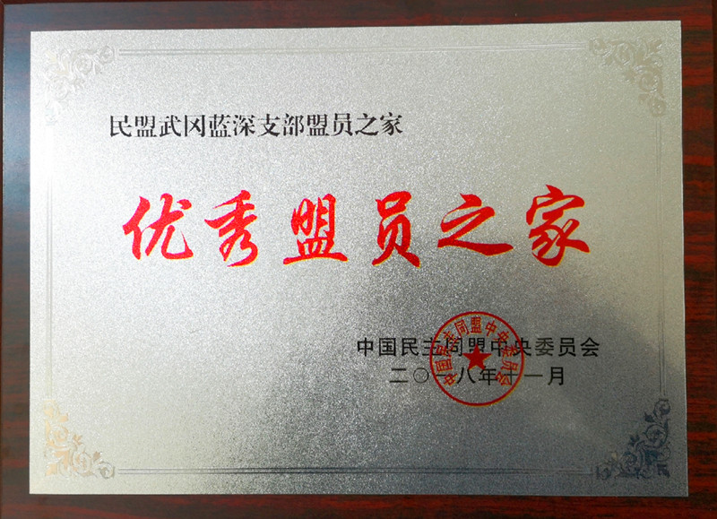 2月24日,武冈蓝深学校收到中国民主同盟中央委员会颁发的奖牌,民盟中央授予民盟武冈蓝深学校支部〝优秀盟员之家〞称号。