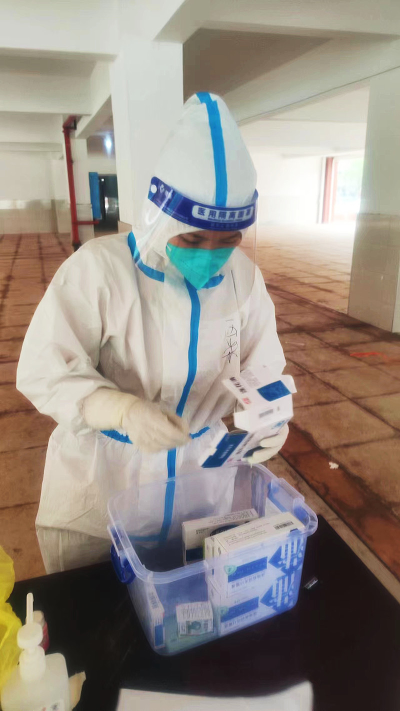 随着前几天隔离人员的接收完成,隔离点的工作逐渐进入了正轨,配合医护人员核酸采样、送餐、值班、取药送药、24小时待命接听隔离人员来电、汇总信息、报送人员名单、协助阳性人员转运方舱医院等等成为了我们的日常工作,而其中每餐送饭时要将一百四五十份饭搬运上楼再分发,成了我们最大的“力气活”,在密不透风的防护服里,是我们早已湿透的衣裳。