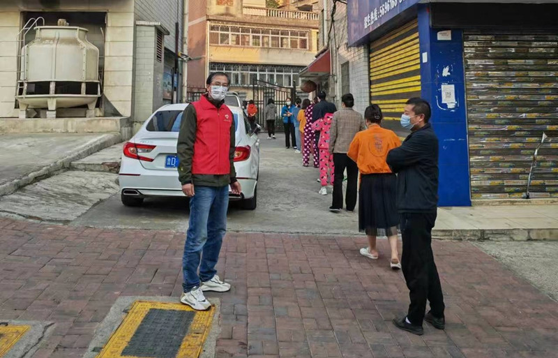 市五中盟员罗更强同志在社区担任志愿者