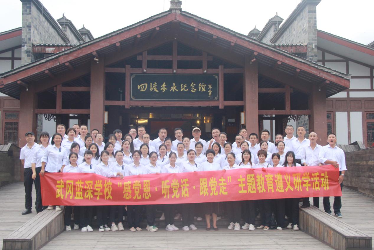 国庆节前夕,中共武冈市蓝深学校党支部和民盟武冈市蓝深支部,联合开展“凝心铸魂强根基,团结奋进新征程”主题教育活动,组织全校共产党员、民盟盟员和教师代表共70余名老师赴贵州省遵义市红色教育基地开展研学。