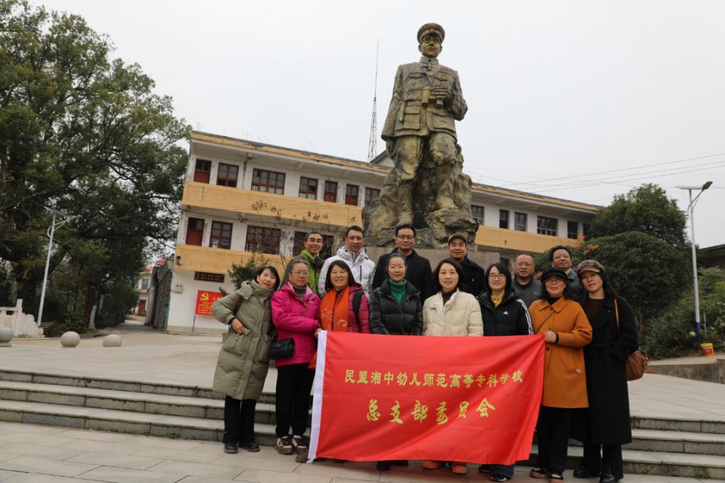 12月21日,民盟湘中幼儿师范高等专科学校总支组织部分盟员来到新宁县开展主题教育活动,追寻红色足迹,赓续红色血脉。盟员们先后参观了宛旦平故居及红军亭、红军井,学习革命先辈的感人故事和光辉事迹,弘扬革命先辈的英勇精神和坚定信念,为落实立德树人根本任务建功立业。
