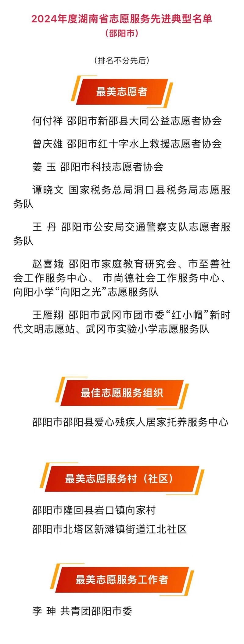 3月5日,中共湖南省委社会工作部举办志愿服务先进典型宣传活动,发布了2024年度湖南省志愿服务先进典型名单,邵阳8名个人、3个集体上榜,民盟邵阳市直机关二支部盟员姜玉获得全省“最美志愿者”称号。