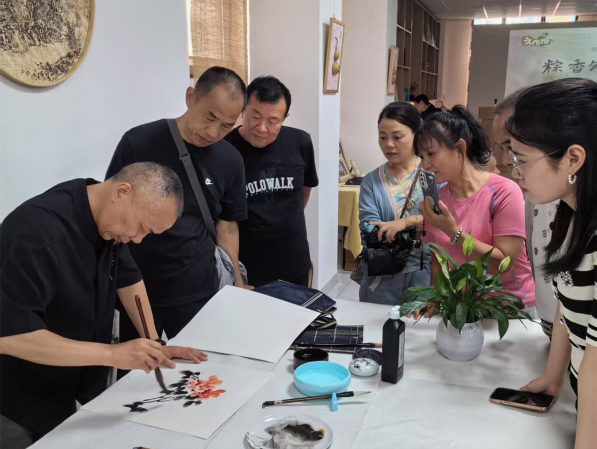在爱莲街道砂糖村服务中心,盟员们参观了“公共文化助力乡村振兴基地”。基地活动异彩纷呈,有宝庆烙画、艾锤制作、书画交流、古装服饰等,带给盟员沉浸式体验。