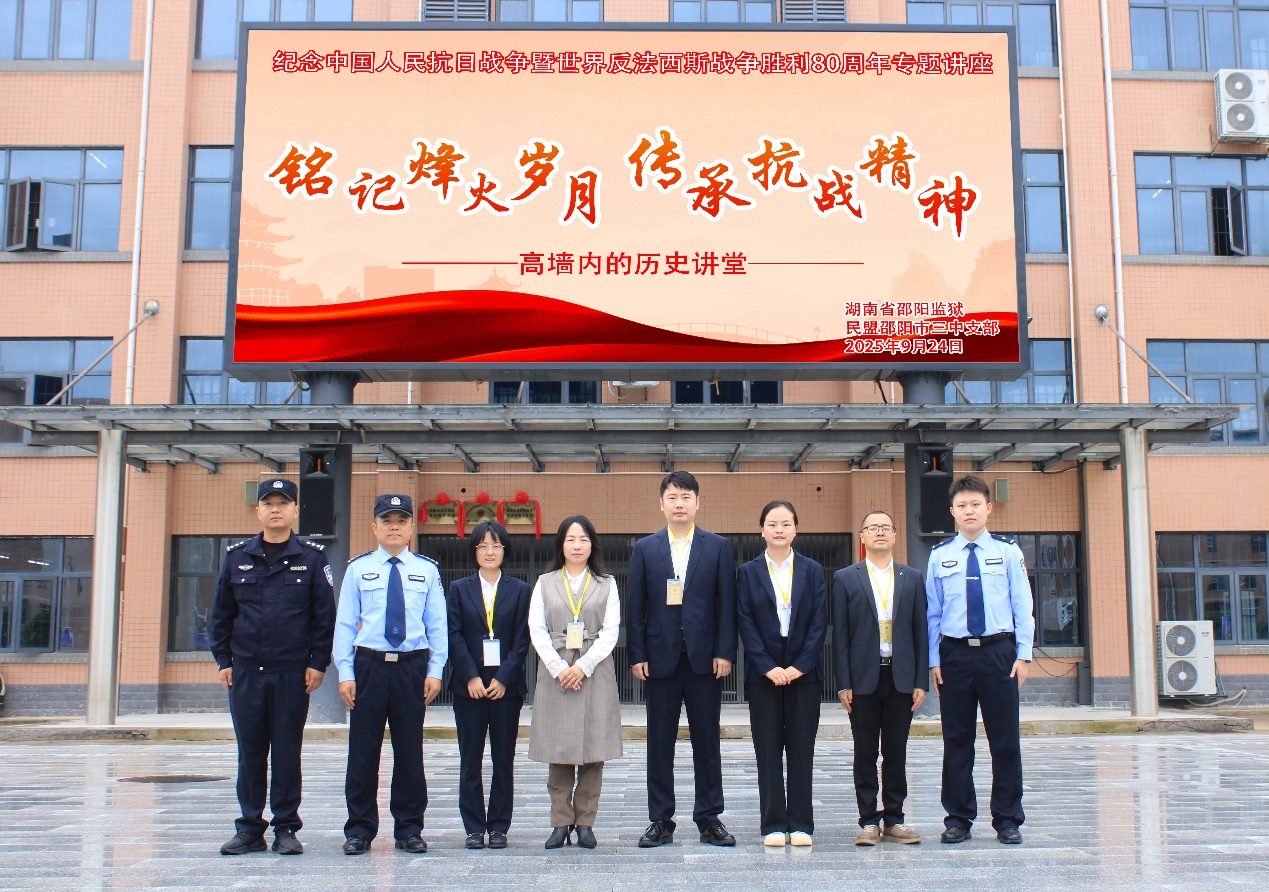为纪念中国人民抗日战争暨世界反法西斯战争胜利80周年,弘扬伟大抗战精神,深化爱国主义教育,9月24日上午,民盟邵阳市委会副主委邱小妹带队,市三中支部部分骨干教师一起走进邵阳监狱,为服刑人员带来一场题为“铭记烽火岁月,传承抗战精神”的历史专题讲座。讲座在邵阳监狱教育改造中心举行,邵阳市三中骨干教师曾选担任主讲。