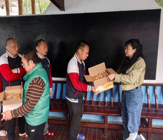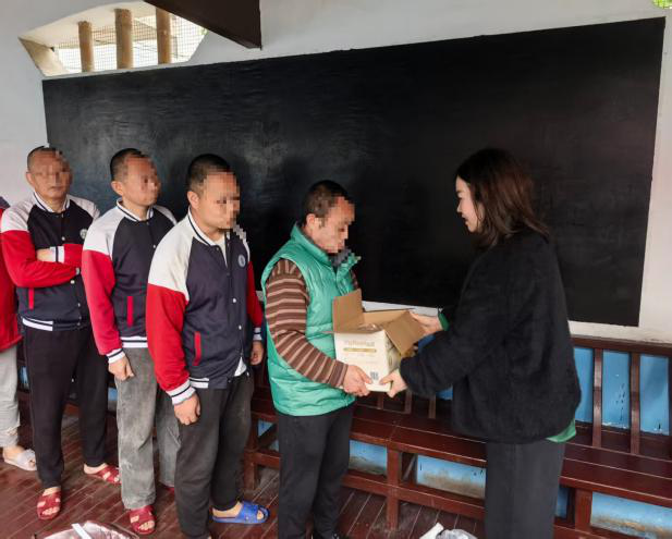 民盟市二中总支的盟员们为患者送来了爱心物资,亲手将衣物、食品分发到每一位患者手中,耐心与他们交流,用真诚的关怀传递温暖,让患者们切实感受到社会的关爱与尊重。